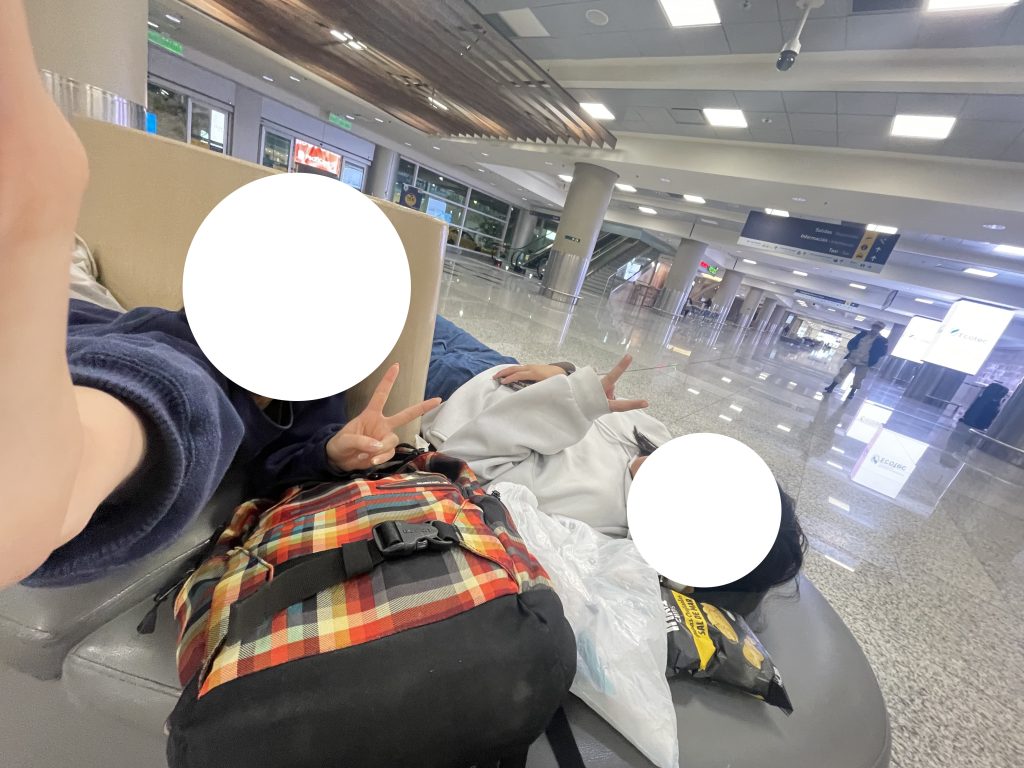 空港の入口で友達と交代で仮眠しながら時間を潰しました。