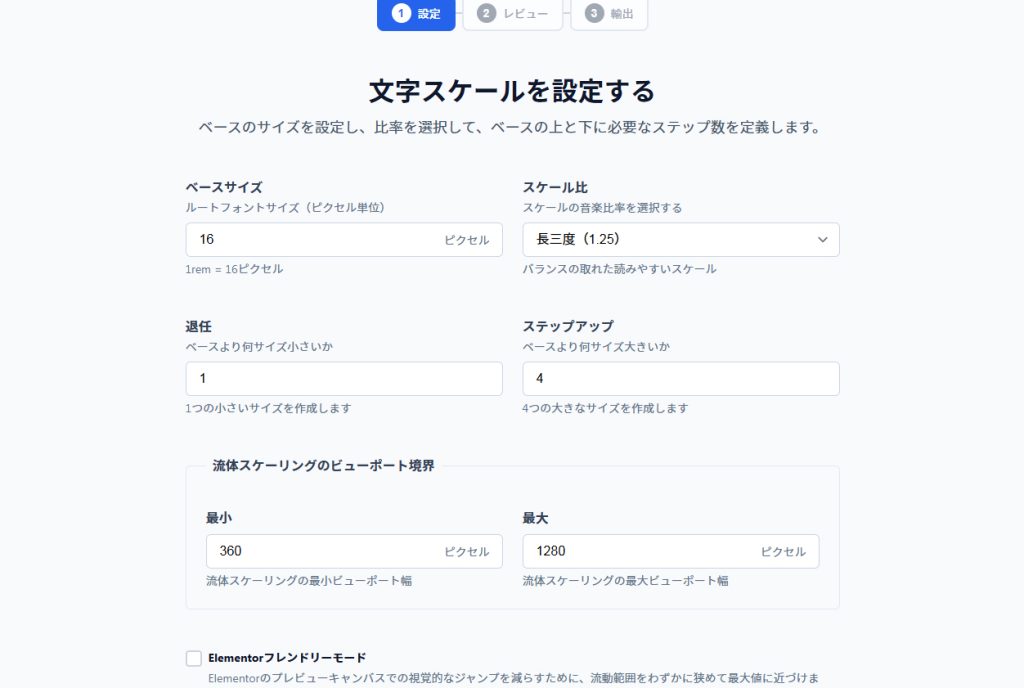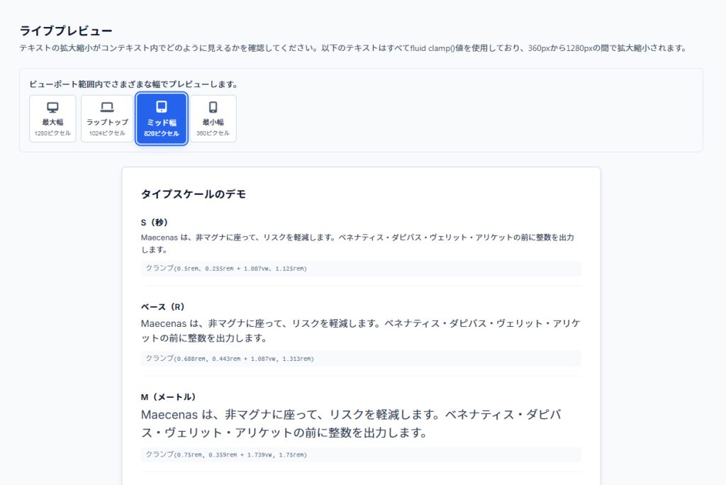 簡単にclamp()関数を使ったレスポンシブ対応のフォントサイズ(流体タイポグラフィ)を定義してくれます。