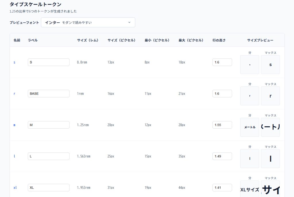 下部にあるボタンを押し次に進むと文字のスケールが確認できます。line-heightも設定できます。こちらもデフォルトでいい感じの高さになってるのでデフォルトでもOK。