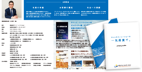 ホームページからお問合せかあったお客様にお渡しする会社案内パンフレットのデザインを行います。